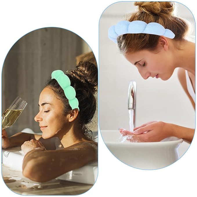 - [Soft & Comfortable] The spa headband hairband is made of high-quality sponge and terry cloth fabric, the sponge lining makes it extremely soft, cushy, and intimate to your skin. The spa headband for women are functional for washing face, makeup, mask routine, yoga, taking shower, birthday spa party and sleepover party.