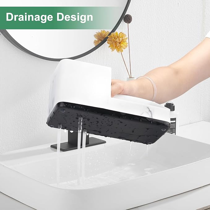 - NON-SLIP DRAINAGE DESIGN: The bottom of the bathroom sink organizer is equipped with 4 rubber pads and 3 drainage ports. The anti-slip strip can prevent the toothbrush holder from falling and scratching the table. Drainage holes on the bottom can drain at any time, avoiding moisture on the bottom of the toothbrush and toothpaste, keeping your bathroom dry and tidy.