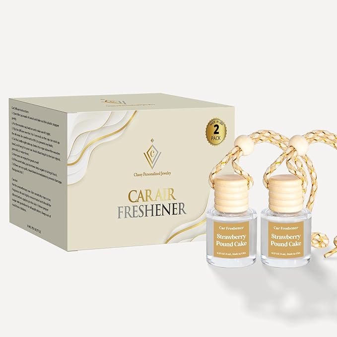 Car Air Freshener Hanging, Essential Oil Diffuser for Car, Strawberry Pound Cake Car Air Freshener Cute, Long Lasting Air Freshener for Car, Air Fresheners for Women,Made in USA