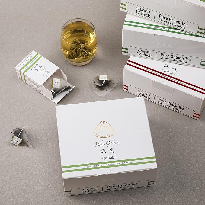 GTGLOTRA Full-Leaf Green Tea, 72 Pyramid TeaBags(12 Pack), Easy Brew, 100% Natural, Pure Leaf Biodegradable Tea, Caffeine Alternative to Coffee, Whole Leaf Tea Sampler, Family Size, Gifts, Office Reception&Daily Consumption
