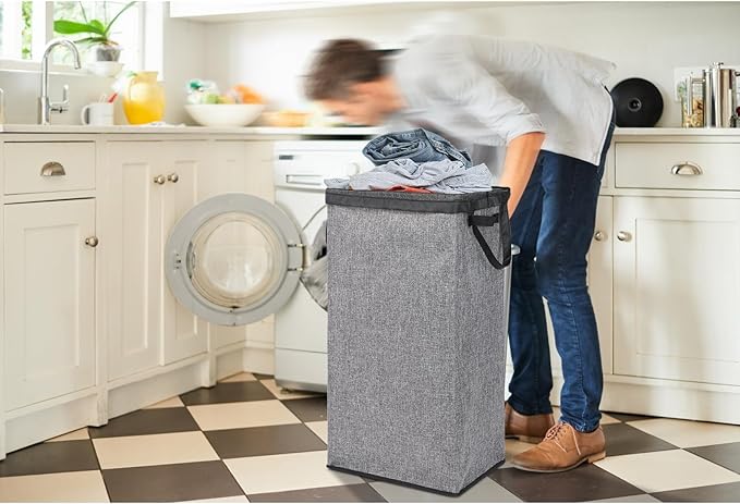 DOKEHOM 100L Laundry Basket with Lid and Removable Laundry Bags, Large Collapsible Laundry Hamper for Bedroom, Bathroom, Laundry Room, Colloge (Grey)