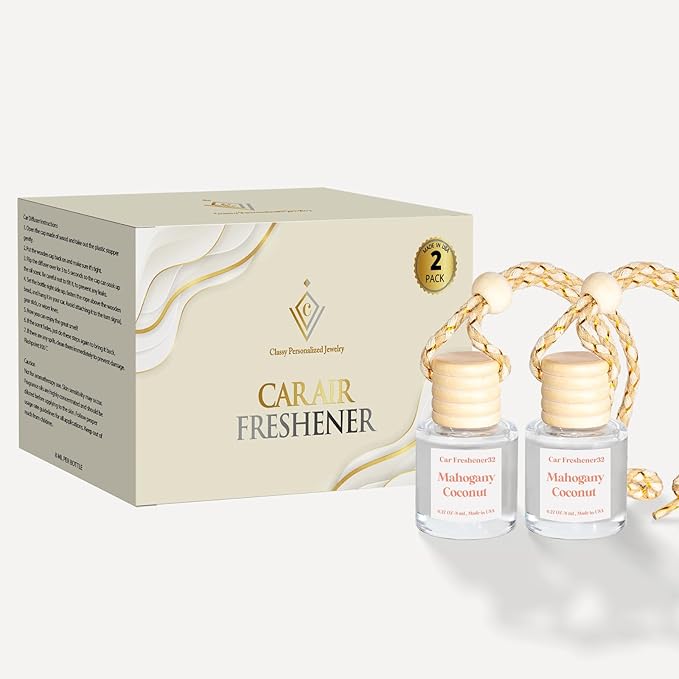 Car Air Freshener Hanging, Essential Oil Diffuser for Car, Mahogany Coconut Car Air Freshener Cute, Long Lasting Air Freshener, Car Fresheners for Women, Made in USA