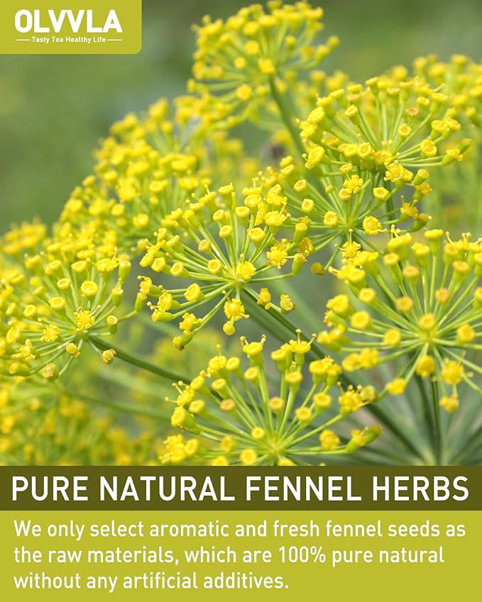 Olvvla - Premium Fennel Tea Bags - 4g X 50 Count - 100% Pure Natural Whole Fennel Seeds - Sweet & Smooth - Non-GMO - Caffeine-free - Support Digestion & Promote Relaxation