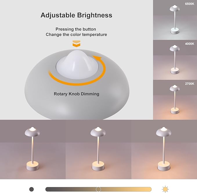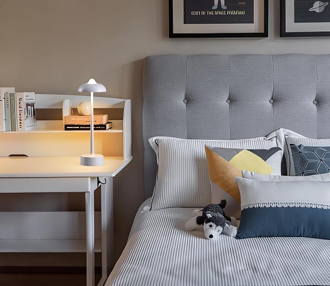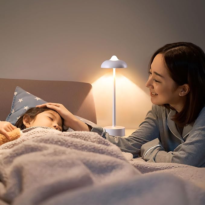- Portable Cordless Design for Versatility Using: This lamp is a practical cordless rechargeable table lamp with a simple modern design and a physical button switch. Its adorable mushroom design not only provides better eye protection but also creates a comfortable and romantic atmosphere. With multifunctional features including portability, waterproofing, 3 color temperatures, stepless dimming, rechargeability, and durability, it is the perfect desk lamp for both indoor and outdoor settings.