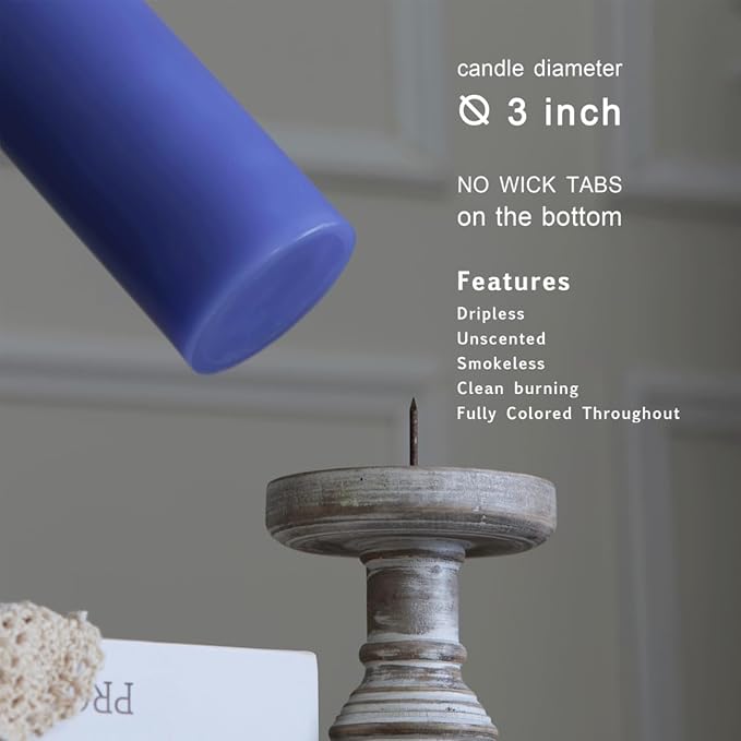 MOZEAL 3" x 4" Hand-Poured Unscented Candle, Dripless Pillar Candle Set of 3, Long Clean Burning, Approx 72 Hours Burn Time, Rustic Country Style,Wedding, Spring Awakening, Home Decor,、Deep Periwinkle