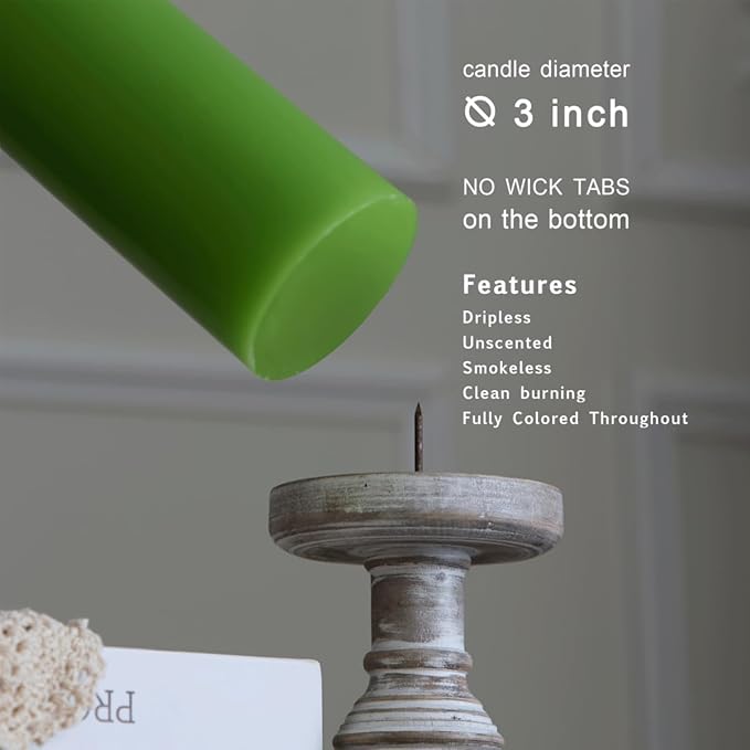 MOZEAL 3" x 4" Hand-Poured Unscented Candle, Dripless Pillar Candle Set of 3, Long Clean Burning, Approx 72 Hours Burn Time, Rustic Country Style, Wedding, Spring, Home Decor, Lime Green