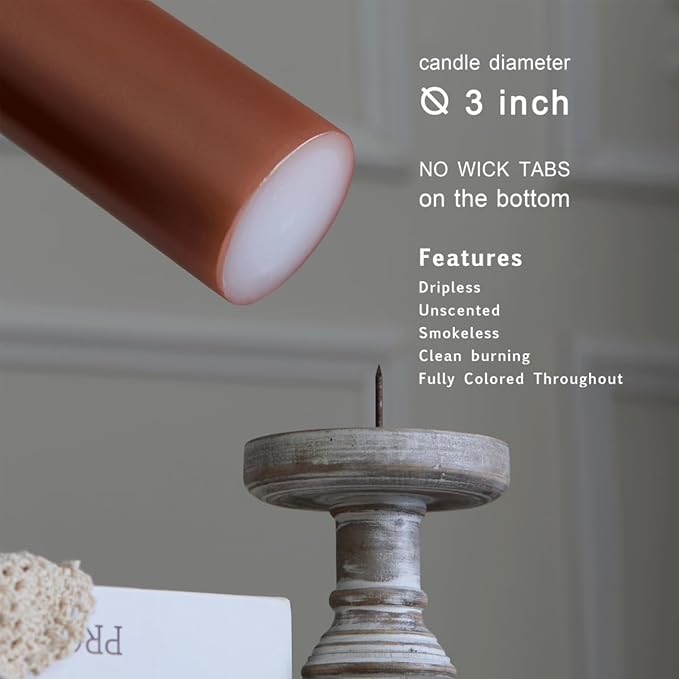MOZEAL 3" x 4" Hand-Poured Unscented Candle, Dripless Pillar Candle Set of 3, Long Clean Burning, Approx 72 Hours Burn Time, Rustic Country Style, Wedding, Fall Harvest, Home Decor, Metallic Copper
