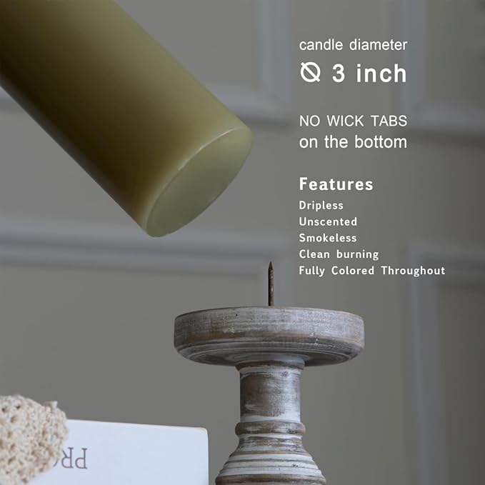 MOZEAL 3" x 8" Hand-Poured Unscented Large Candle, Smokeless Rustic Pillar Candle Set of 2, Slow Burn, No Drip, Approx 150 Hours Burning, Wedding, Dinner, Easter and Home Decorative, Tall Sage Candle
