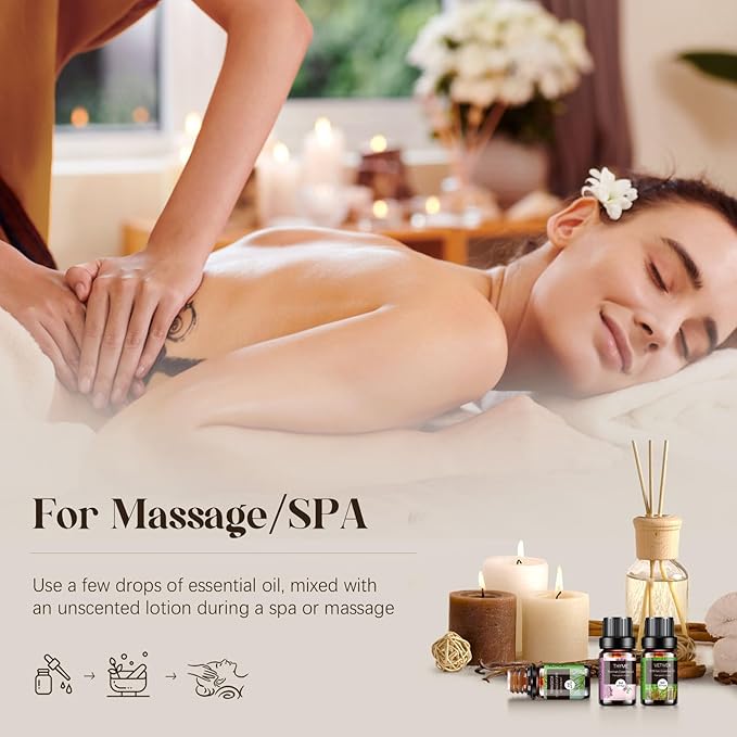 - 【Widely Use】Essential oils are used for diffuser aromatherapy, just add a few drops to freshens rooms with a long-lasting aroma scents. Whether it be office, meeting room, study, or bedroom, living room, yoga centers, bathroom, SPA centers. Enrich your every day with a fragrant journey as it transports you to a whole new state of mind, drop by drop.