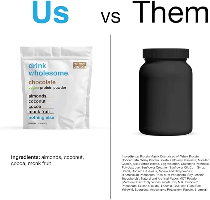 - FOR SENSITIVE STOMACHS: Drink Wholesome Vegan Chocolate Almond Protein Powder is made for sensitive stomachs. It's an easy-to-digest protein supplement for individuals with stomach issues.