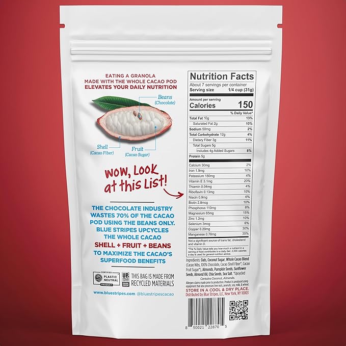- THE CACAO REVOLUTION - Blue Stripes exists to unleash the nutritious power of the whole cacao, bringing nature’s best to your table, bag, car, or gym with delicious, better-for-you snacks