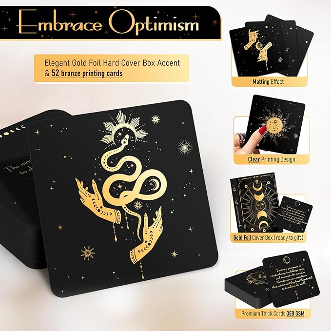 - Manifest Abundance & Positivity: This keepsake affirmation card set includes 52 black and gold cards, each uniquely written to help you attract prosperity, confidence, and the abundance of your dreams