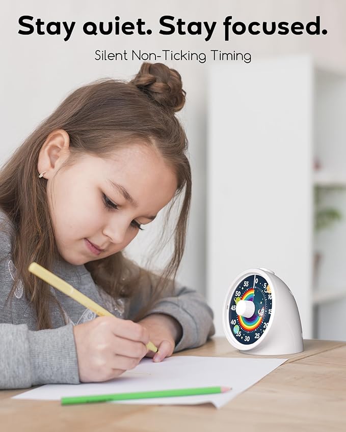 - Quiet Quartz Timer: When the “rainbow” disk is shrinking, it won't make any annoying ticking sound, creating a quiet environment for you, so you can focus on your work or study without being disturbed.