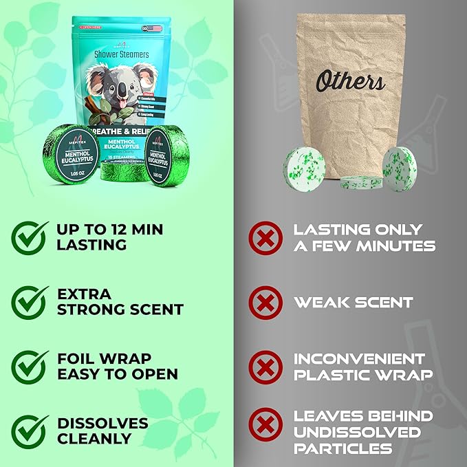 - Strong Scent: Our shower steamers are infused with powerful menthol essential oils, providing a strong and invigorating aroma that fills your shower with a refreshing scent