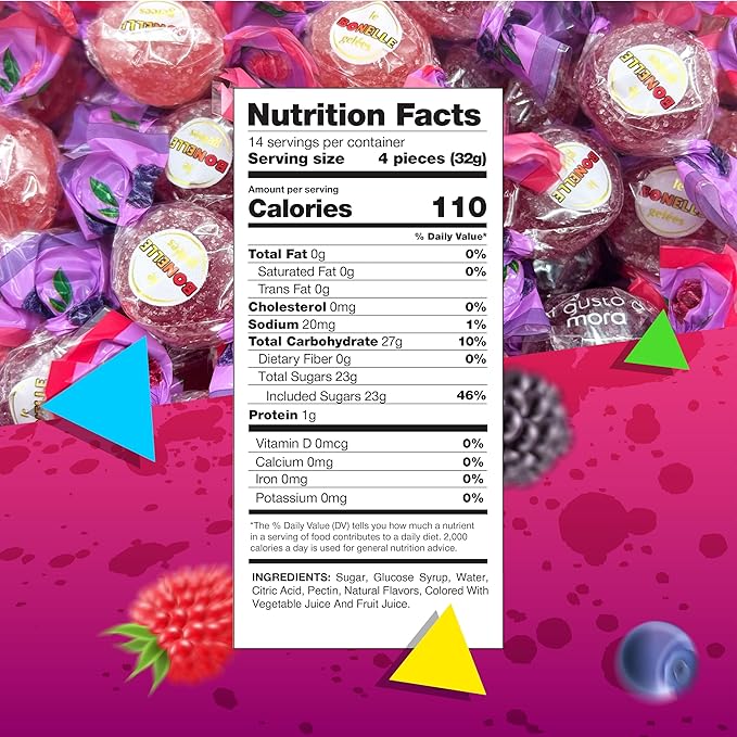 - Contains approximately 55 pieces; 1-pound bag of Bonelle Italian Berry Jelly Candy