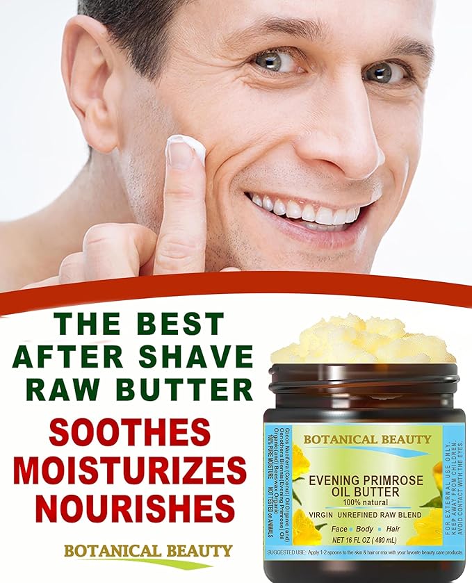 - Use Topically for DAMAGED HAIR, DRY SCALP AND BRITTLE NAILS. EVENING PRIMROSE OIL BUTTER promotes silky soft hair, prevents moisture loss and adds elasticity and suppleness, and also provides an immediate sparkle and shine, and helps to mend split ends. It is a powerful moisturizer, perfect Natural Skin Moisturizer, Skin Facial Oil Butter, Face moisturizer, Face Butter, Hair Butter.