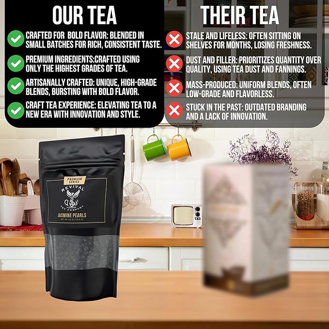 Revival Tea Company Jasmine Tea Pearls - Hand-Rolled Green Tea Scented with Jasmine Flowers - 4.5 Ounces