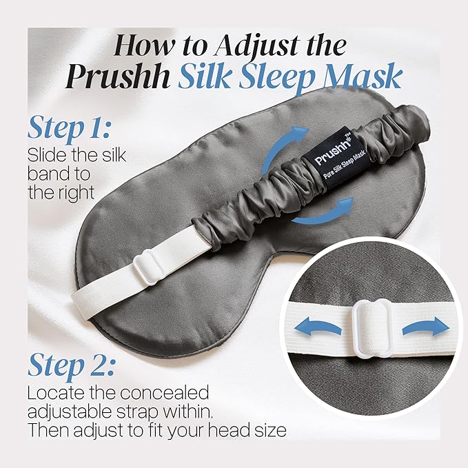 - 【Adjustable For Your Perfect Fit With a Hidden Customizable Strap】Adjust the Prushh Silk Sleep Mask to your own personal comfort with an concealed and easily adjustable strap band that makes it suitable for all head sizes for both Women and Men. This ensures a great fit, tangle-free sleep, and a mask that stays in place all night.