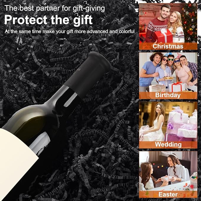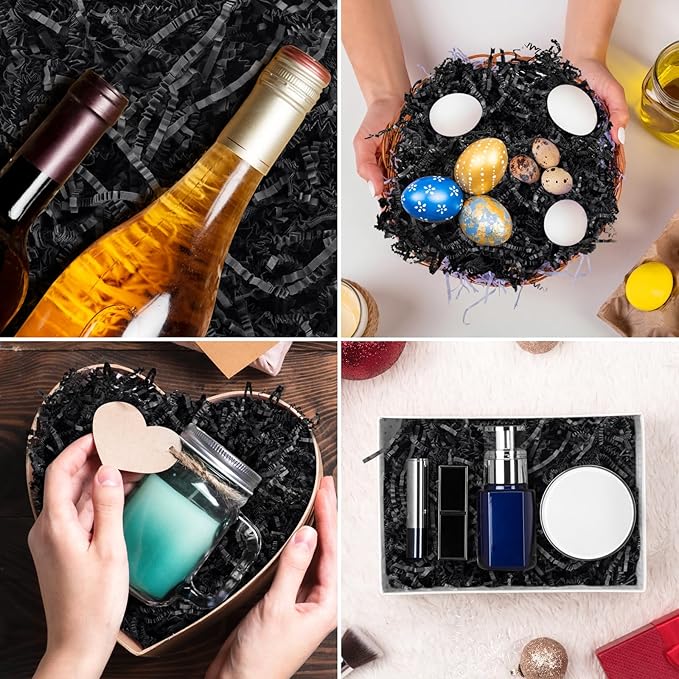 Darfukei Shredded Paper For Gift Baskets, 1/2LB (8 oz) Black Crinkle Paper Filler, Crinkle Cut Paper Shred For Birthdays, Weddings,Boxes Bags,Halloween Basket Filler,Anniversaries,Gift Wrapping