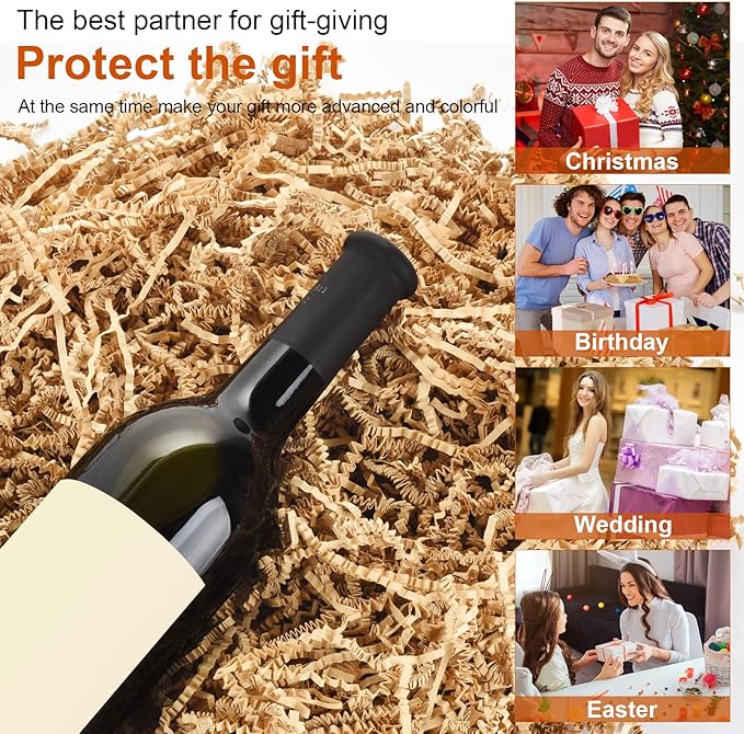 Darfukei Shredded Paper For Gift Baskets, 8oz Kraft Crinkle Paper Filler, Crinkle Cut Paper Shred For Birthdays, Weddings, Anniversaries, Gift Wrapping