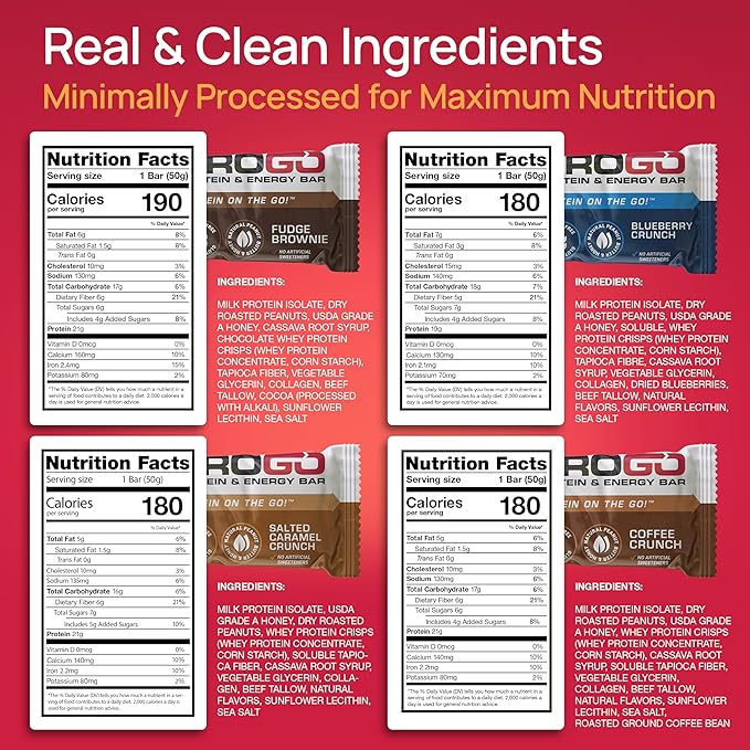 - Clean, Up to 21g High Protein Snacks: ProGo’s 95% pure isolate blend powers these high protein bars, delivering superior fuel for muscle growth and repair compared to other bars’ 30–80% blends.