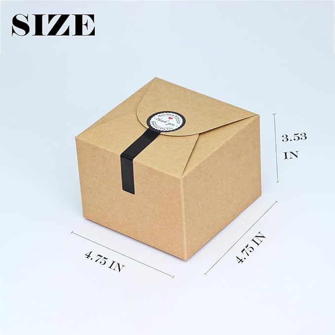 Brown Gift Box with Stickers, 10 Pack Small Cute Boxes for Gifts, Candy, Cookie, Chocolate, Craft, Candle, Party, Birthday and More(4.75” x 4.75” x 3.53”)
