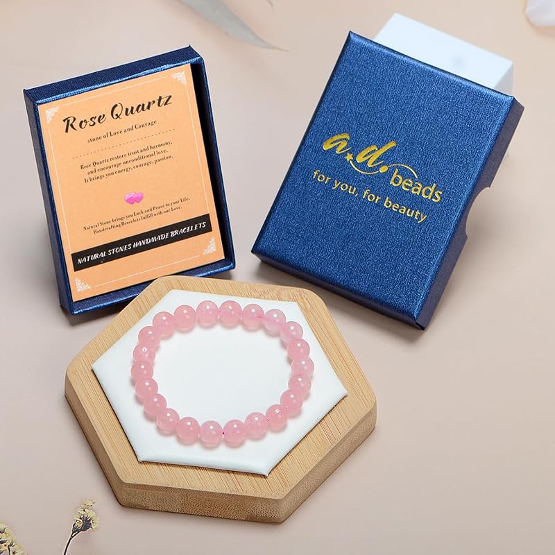 AD Beads Handmade Gemstone Stretch Elastic Bracelet Crystal Healing Reiki Nature's Beauty and Spiritual Essence Unisex (12mm, Rose Quartz)