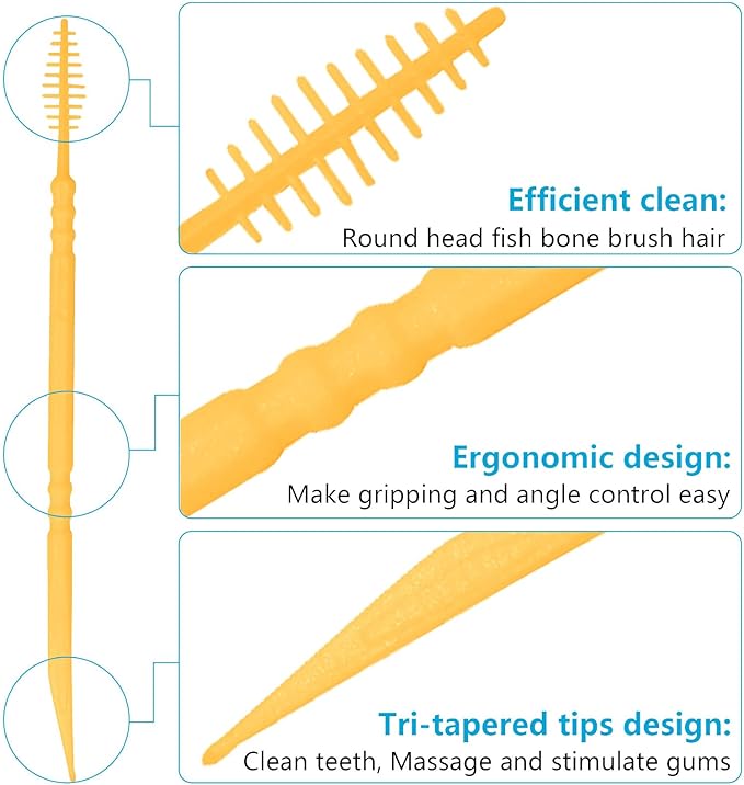 Brushpicks Interdental Toothpicks,Soft Bristle Dental Floss Picks Toothpicks,Helps Removes Plaque and Debris Between Your Teeth 600PCS (Pack of 5) Orange