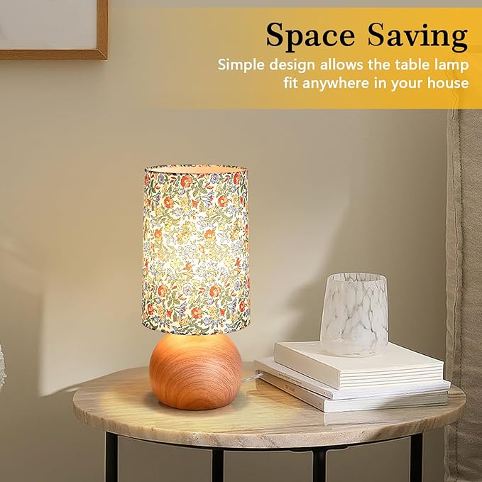 - 【Versatile Home Lighting】 With its simple design, this small table lamp is suitable for decorating any corner of your home, especially in the bedroom, living room, study room, kids' room, nursery, office, or dorm. Featuring a flowers linen shade and a wood grain metal base, this bedroom lamp is an ideal Christmas gift for your family and friends.