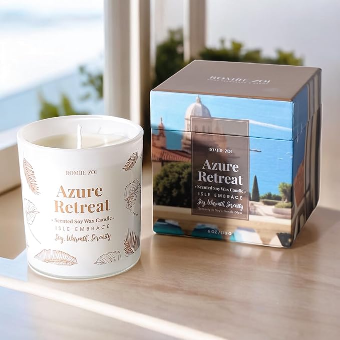 ROMIIE ZOI Tidal Treasure Scented Candle - Ocean Whisper - 6oz Soy Wax Candle for Home Scented, Stress Relief Candle Gifts for Women/Men