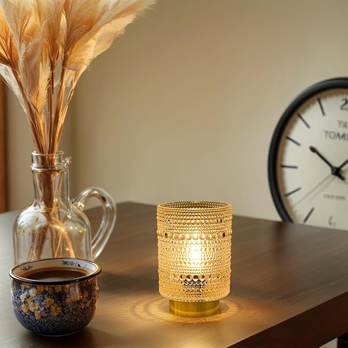 - 【Decorative Cordless Lamp】Hand-blown Glass Design: Made from thick glass, this battery table lamp blends rustic charm with modern minimalism. Its weighted cordless lamp base stays stable on wood, tile, or uneven surfaces — doubles as home décor for farmhouse, boho, or office spaces.