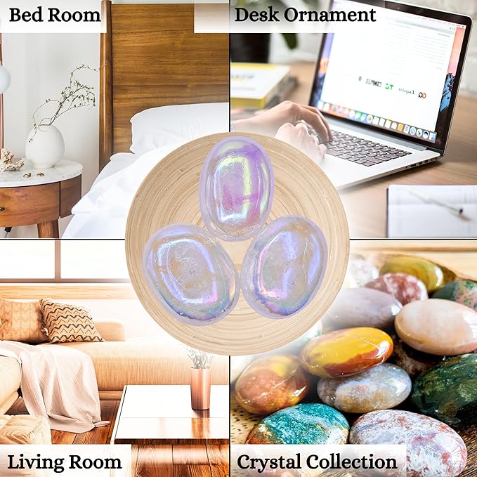 - Versatile and Multi-purpose : Our angel aura quartz palm stone is versatile, suitable as christmas stocking stuffers and even as ester basket stuffers. These palm stones and crystals gemstones can be used for yoga meditation, decoration, and healing.