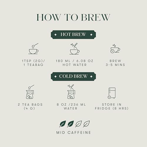 - BREW IT RIGHT - HOT BREW: Add 1 teabag/ 2g of tea to a cup of filtered water. Steep for 3-5 minutes. Remove the tea bag or strain the loose leaf. COLD BREW: Steep 2 teabags/ 2 tsp tea in your cup for 8-10 hours or overnight, add ice and enjoy your iced cold brew! Enjoy your calming cup of Sencha Tea.