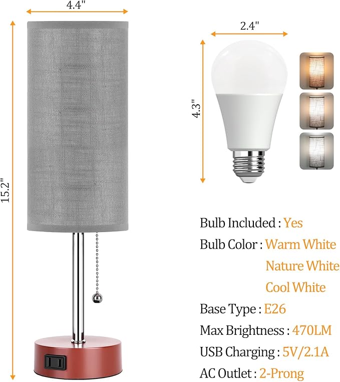 - Table Lamp with Pull Chain: The Bedside Table Lamp comes with a stylish pull chain to control the lamp, you can easy to turn on or turn off the light by pulling the chain, even in the darkness