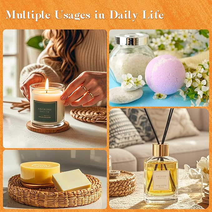 - Multifunctional Oil Blends: ASAKUKI fragrance essential oils are designed for but not limited to candle scents for candle making, diffuser or humidifier oil scents, oils for laundry, soap making supplies, slime scents, bath bombs, and many more DIYs