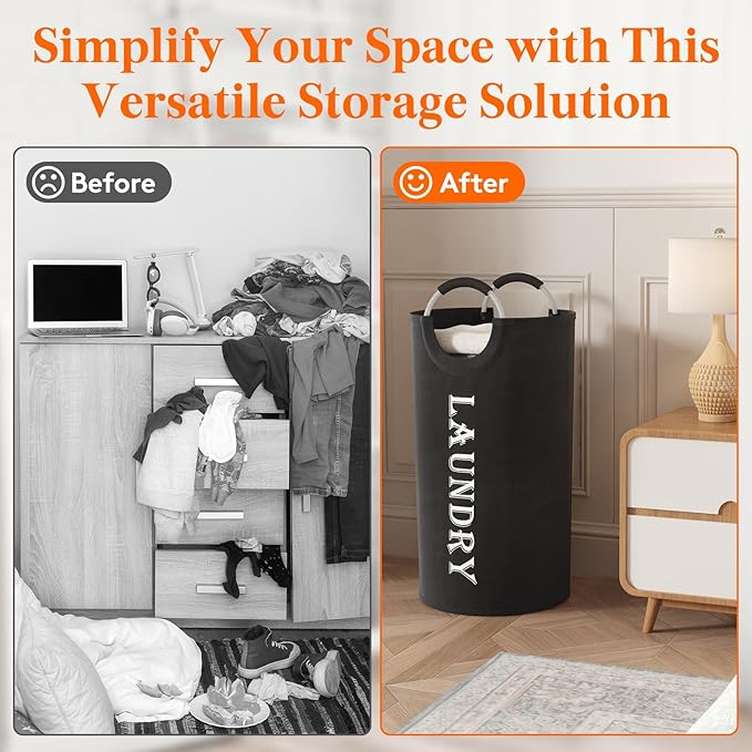 - Stands Tall yet Folds Small: This laundry hamper with handles stands upright even when empty, making it convenient for filling. It can also be folded and stored in a small, portable size to save space when not in use.