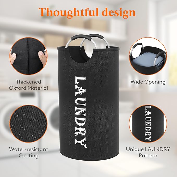 - Premium Material: The laundry hamper is made of high-density 600D Oxford fabric, which is sturdy and resistant to damage. The interior features a waterproof EVA coating that keeps clothes fresh and dry. Cleaning is easy - just wipe it with a damp cloth.