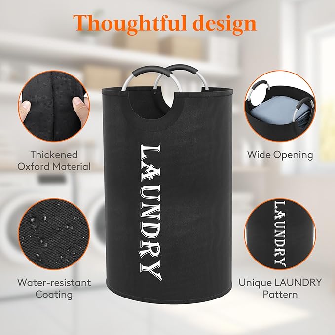 - Premium Material: The laundry hamper is made of high-density 600D Oxford fabric, which is sturdy and resistant to damage. The interior features a waterproof EVA coating that keeps clothes fresh and dry. Cleaning is easy - just wipe it with a damp cloth.