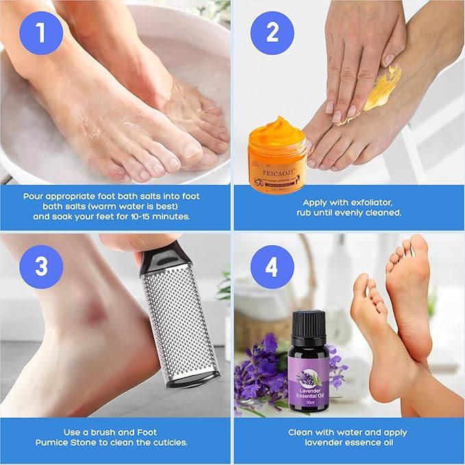 Foot Soak salt kit with Tea Tree Oil - Moisturize, Reduce Foot Odor, & Soothe Aching Feet tool set Foot cream spa bath massager Epsom Salt foot pedicure kit at home spa