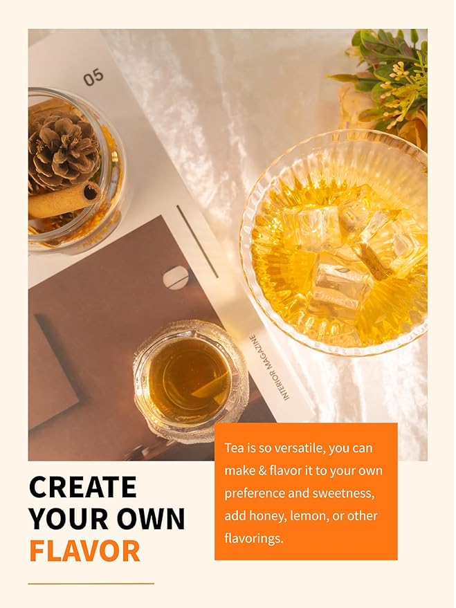 - [100 COUNT ECO-CONSCIOUS TEA BAGS] - Our premium tea bags are made from non-GMO plant fiber, and tea bags are unbleached and compostable. No string and no tag. No extra waste - just healthy & delicious tea!