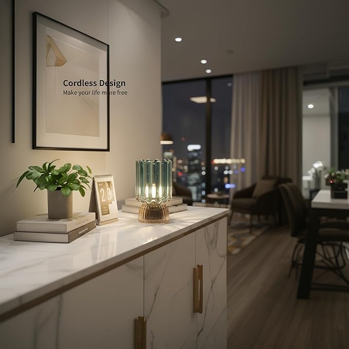 - 【Decorative Cordless Lamp】Hand-blown Glass Design: Made from thick glass, this battery table lamp blends rustic charm with modern minimalism. Its weighted cordless lamp base stays stable on wood, tile, or uneven surfaces — doubles as home décor for farmhouse, boho, or office spaces.