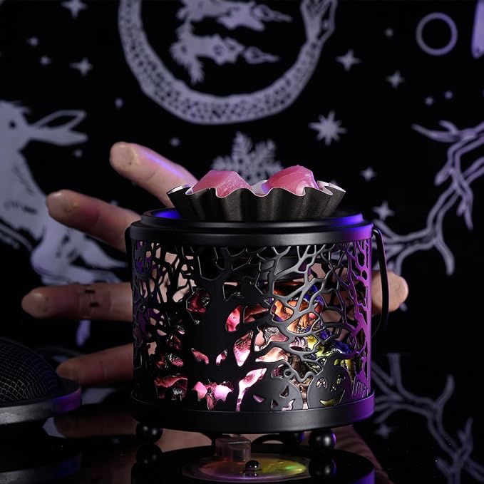 - 🎃🔥【Unique Design】This metal wax warmer is PCBA+LED, consisting of a metal frame and a Ghost Fire/Pumpkin pattern, and the wax tray is made of Teflon technology, which is resistant to high temperatures and corrosion,The color and ambience of a realistic charcoal fireplace sets your room apart