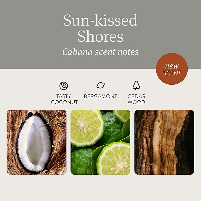- MADE IN THE USA: Made of an organic stone blend specifically formulated for strong, even scent distribution all month long. Magnetized to fit perfectly on your car visor with our metal clip. Our Cabana scent is reminiscent of fresh rain, with notes of tasty coconut, bergamont, & cedar wood.