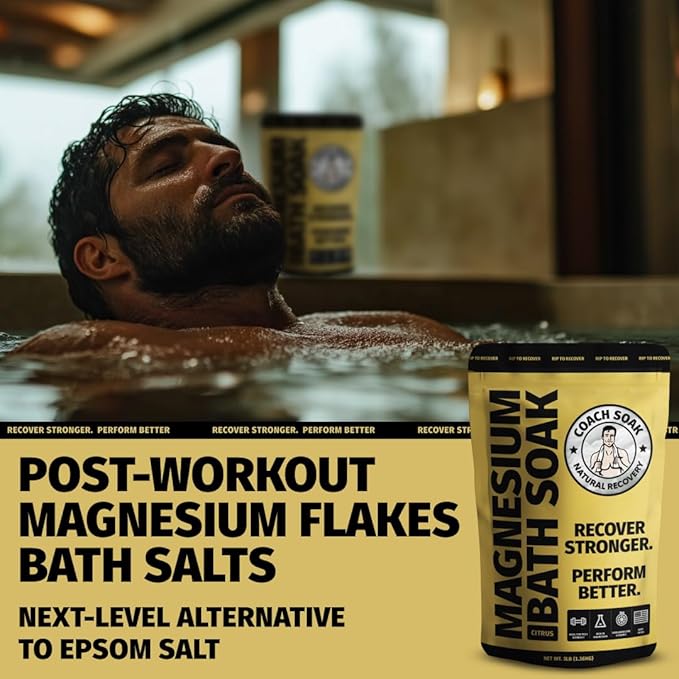 Coach Soak Recovery Bath Soak - Alternative to Epsom Salt Bath Soak - Fast-Absorbing Pure Magnesium Flakes with 21 Minerals, Bath Salts & Essential Oils - 9 lb (Pack of 3)