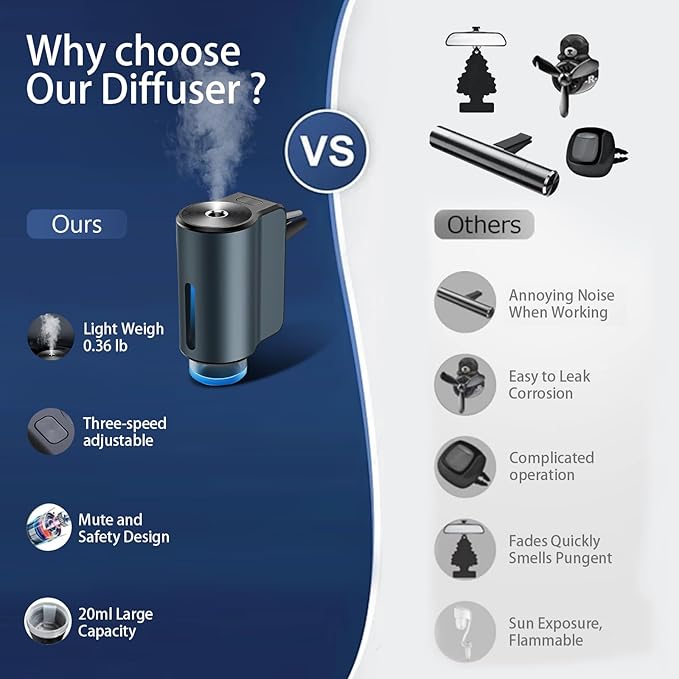 - Pure Essential Oils Experience: Indulge in authentic aromatherapy on-the-go with our proprietary essential oil diffusion technology that delivers undiluted, true-to-nature fragrances through a premium organic cotton wick system, preserving the complete scent profile of your favorite essential oils, provide a genuinely refreshing driving environment.