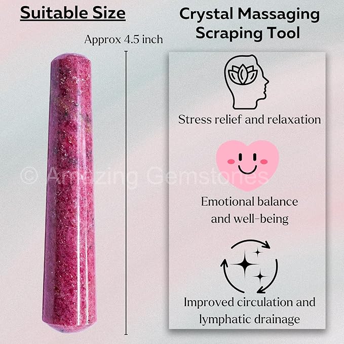 Amazing Gemstone Rhodonite Crystal Wand Massage Stick - Pelvic Wand Gua Sha for Adults - Crystals and Healing Stones Massage Wands for Adults Gifts (Smooth)