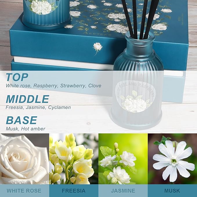 - [ PREMIUM WHITE ROSE AND BERRY AROMA ] Top Note: White rose, Raspberry, Strawberry,Clove; Middle Note: Freesia, Jasmine, Cyclamen; Base Note: Musk, Hot amber. The elegant white rose aroma paired with the sweet taste of berries creates a romantic and sweet rose garden