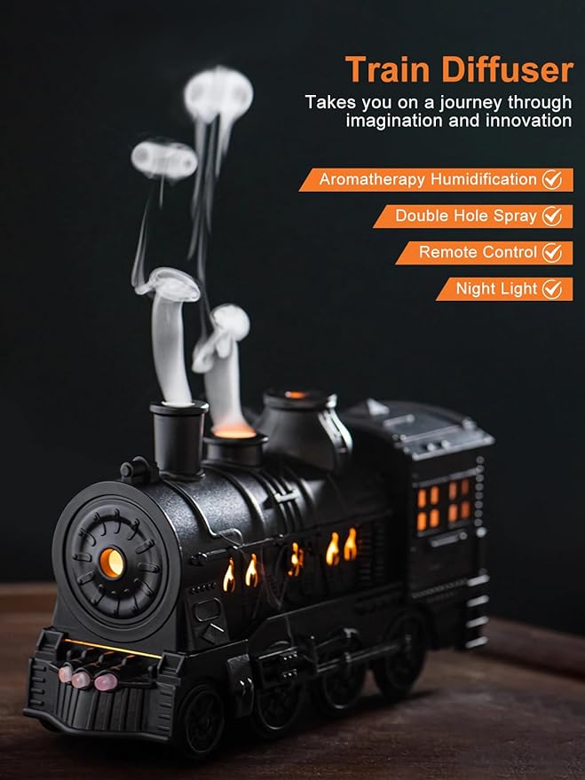 - Unique Train Design: Compact 300ml desktop humidifier adds playful charm to nurseries, desks, or shelves. its design takes you on a journey through imagination and innovation. Perfect gift for kids & train enthusiasts