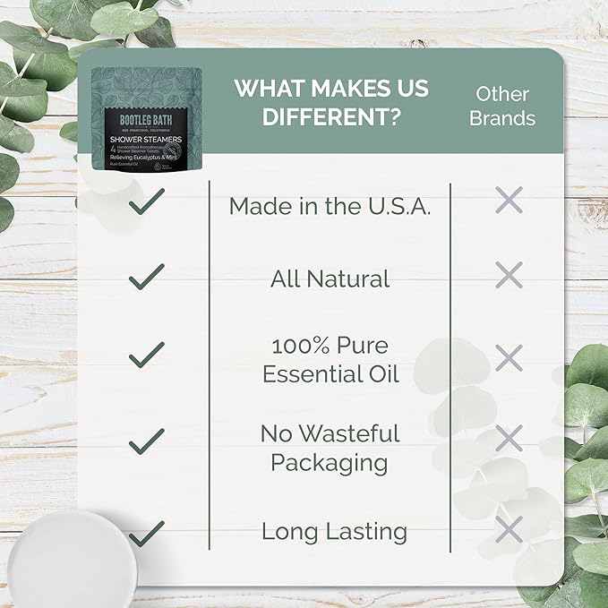 - Aromatherapy - Each shower steamer is made using 100% Pure Essential Oils and Natural Menthol to calm your mind and refresh your senses, that will leave you rejuvenated with each use.