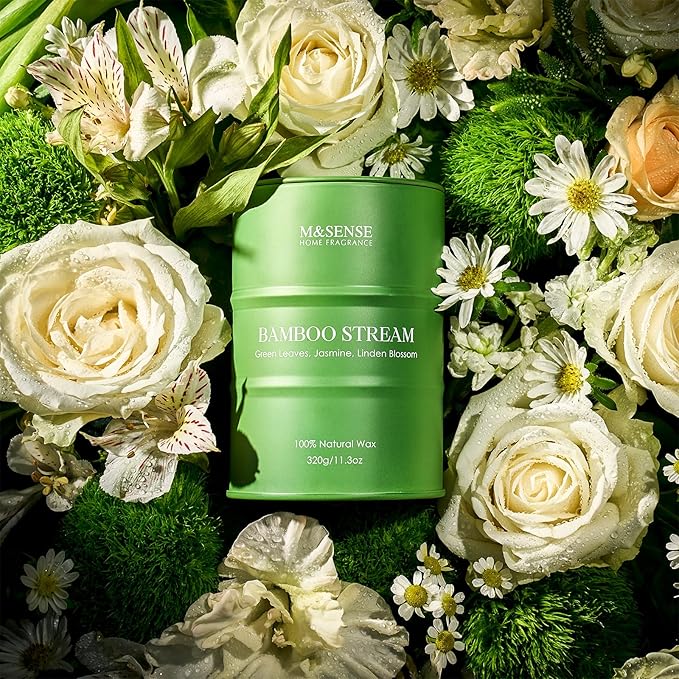 M&SENSE Bamboo Scented Candles Natural Non Toxic, Aromatherapy Candle for Stress Relief Meditation Relaxing, Housewarming Gifts for Women Men, 11.3oz 70 Hour Long Burning